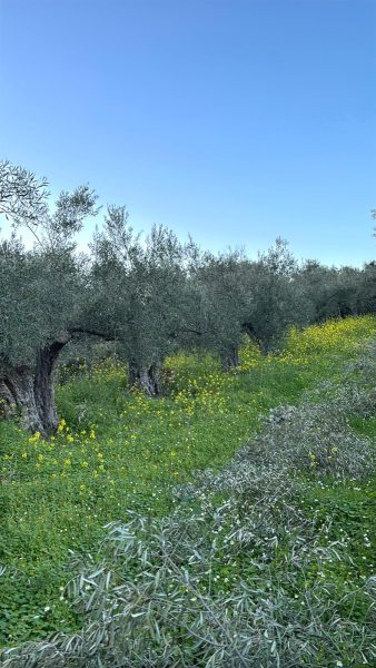 Während in Deutschland der Frühling langsam erwacht, stehen unsere immergrünen Olivenhaine hier auf dem Peloponnes bereits dabei neue Triebe zu bekommen. Wie Sie auf dem Foto sehen können, leuchtet der Boden unter den Bäumen in einem kräftigen Gelb der Wildblumen – ein Zeichen für ein lebendiges und gesundes Ökosystem.